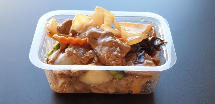 Oignons, carottes, champignons noirs, bœuf
